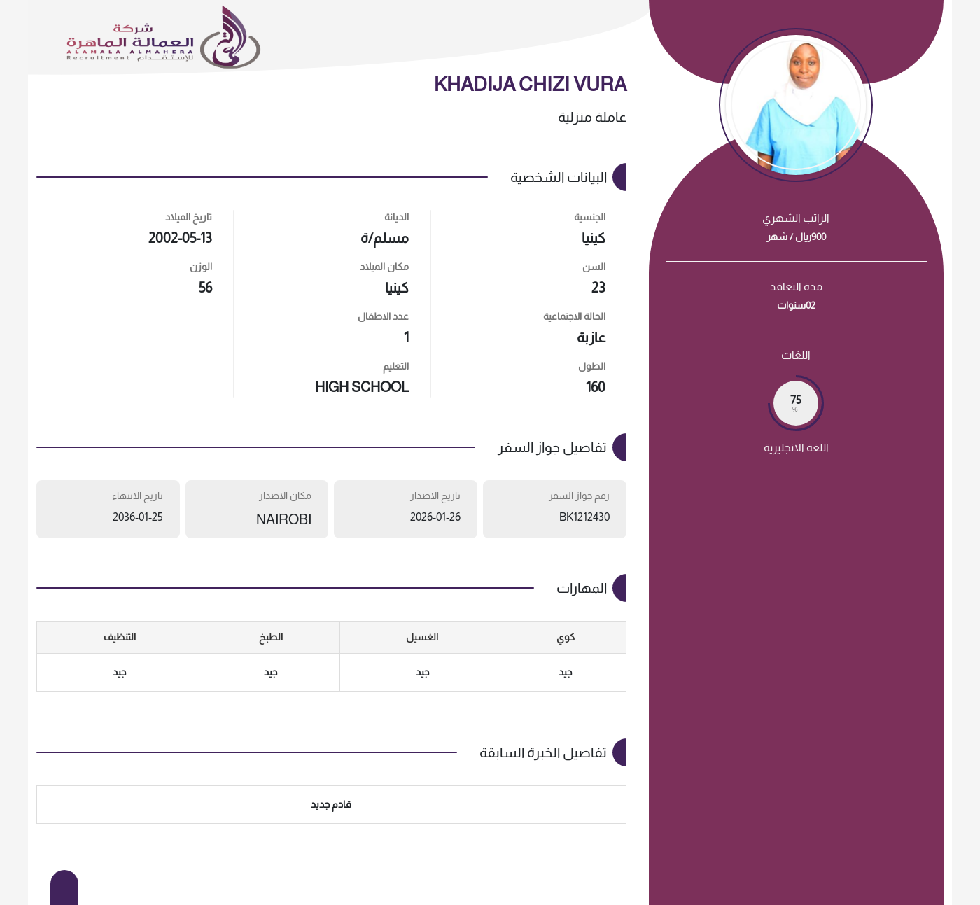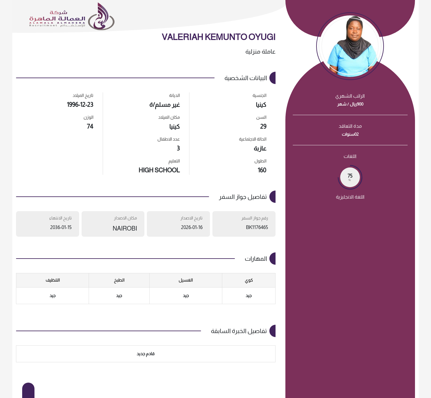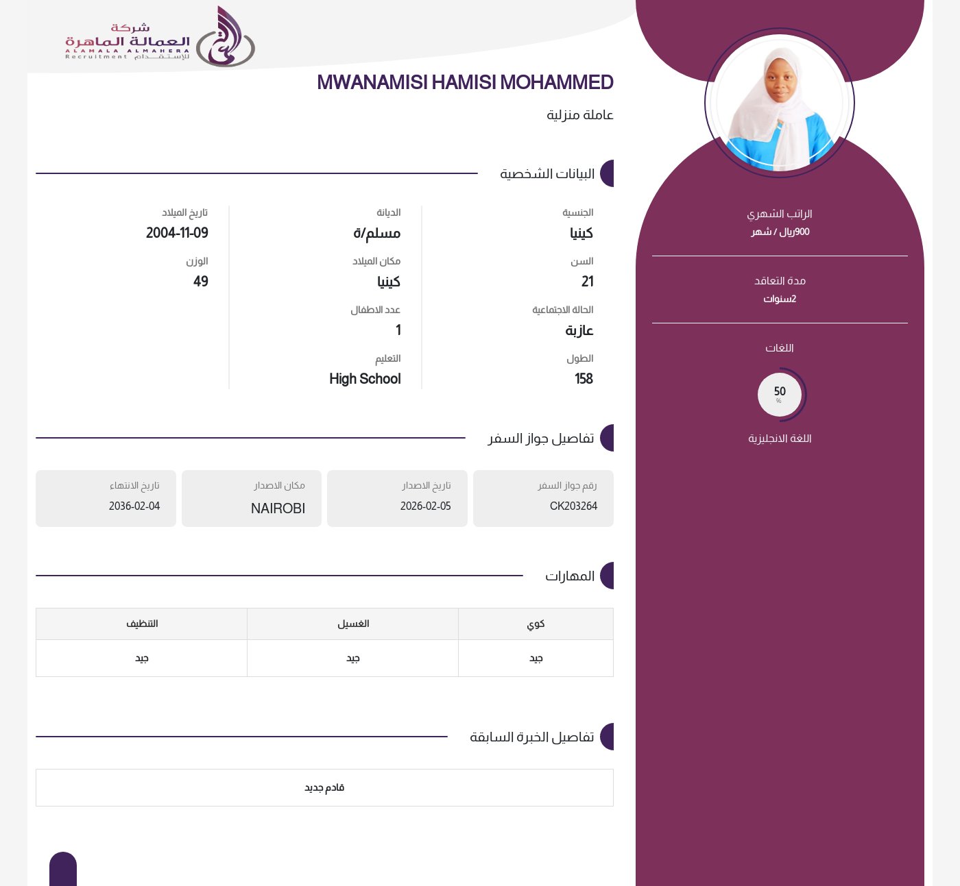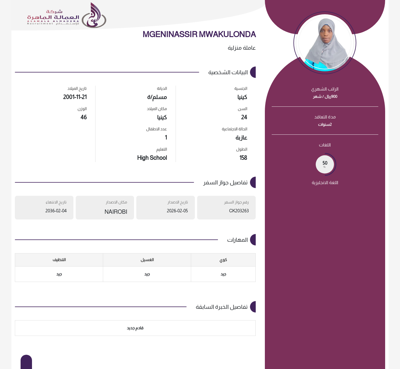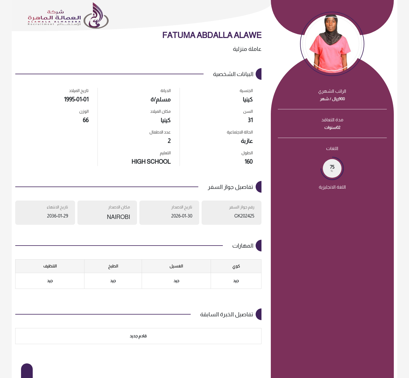 • راتب العاملة :