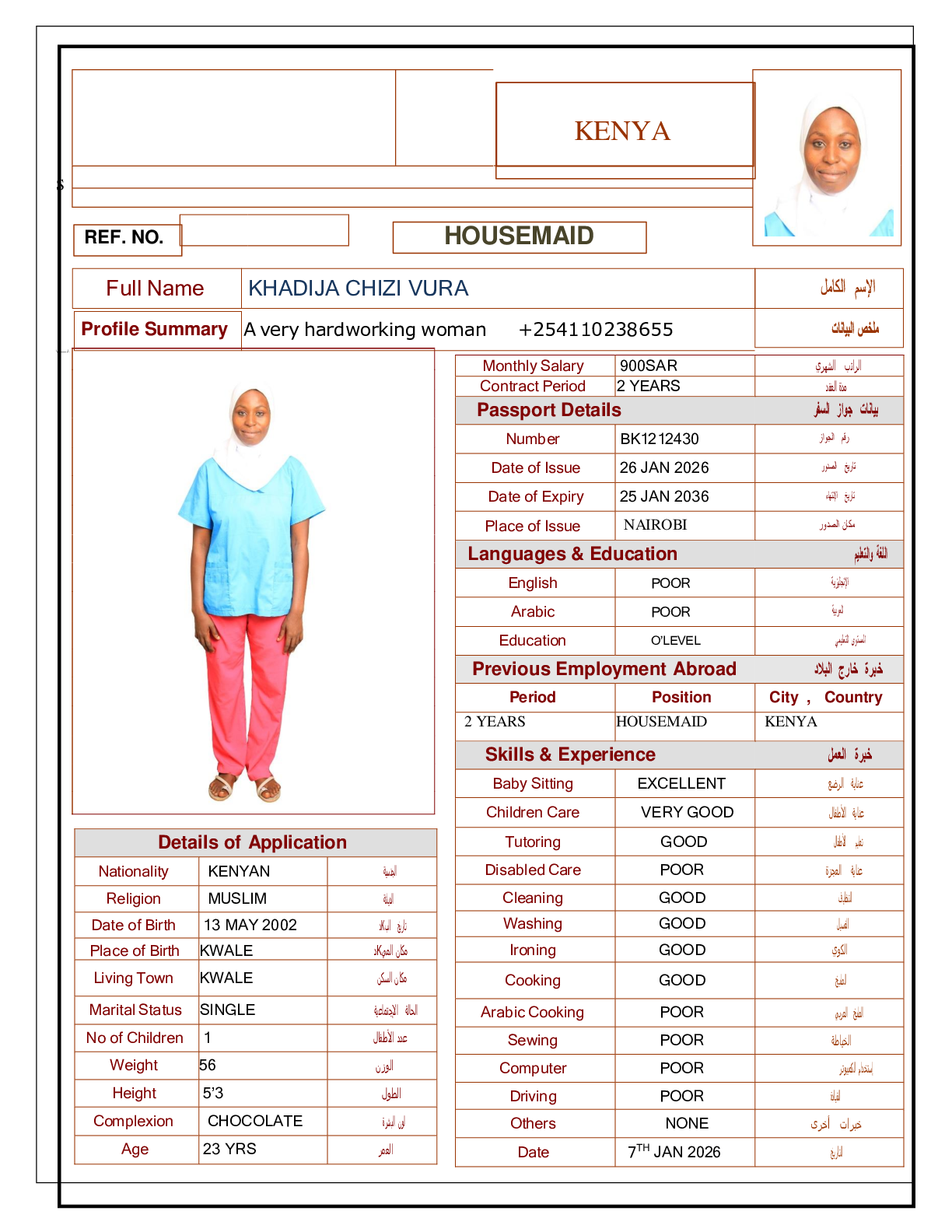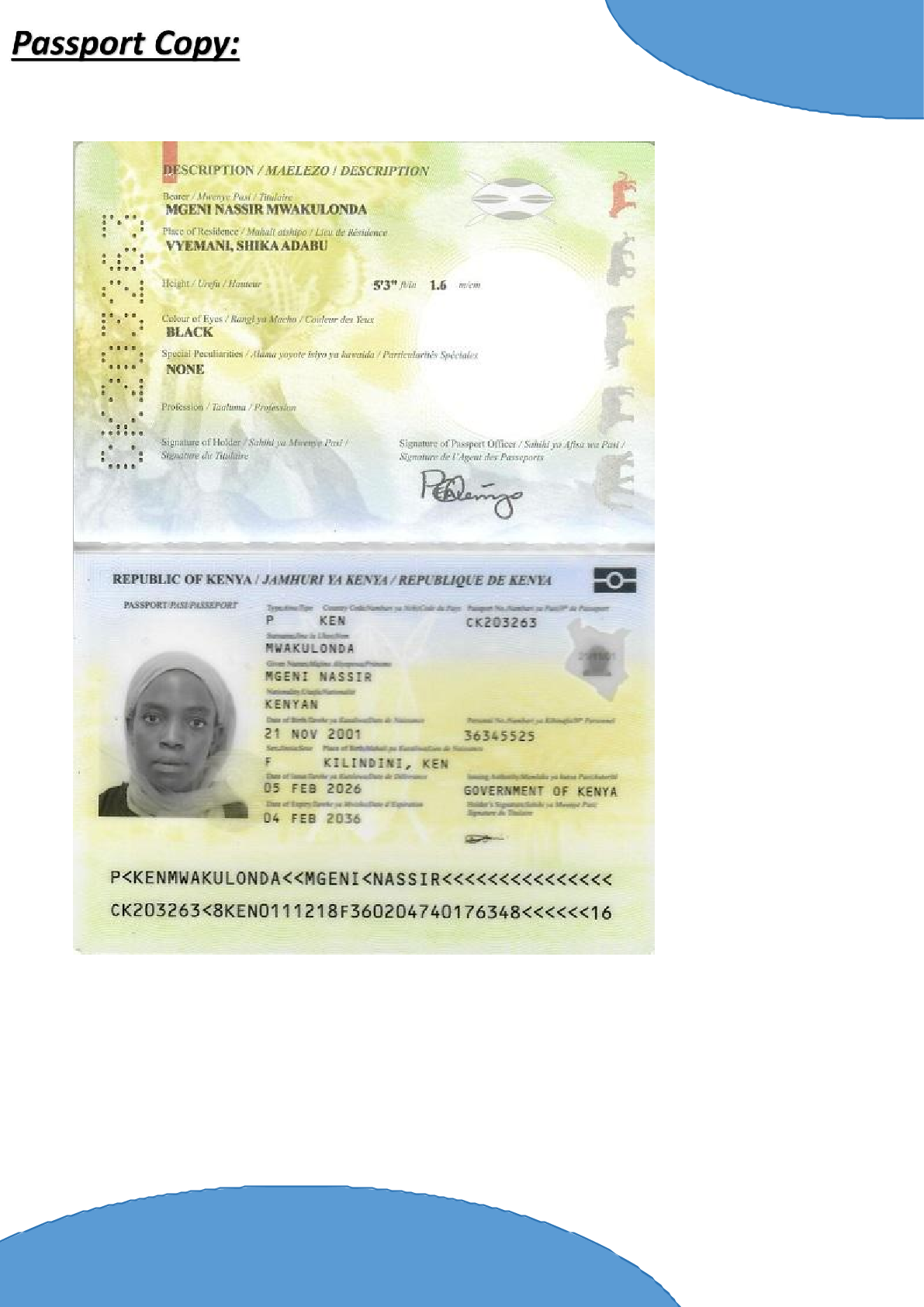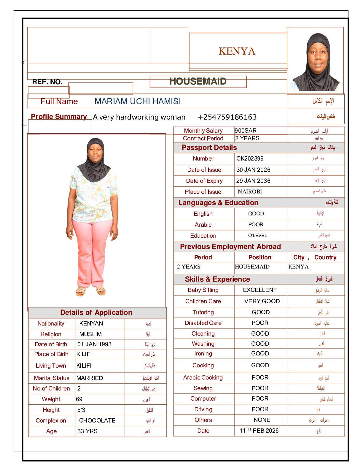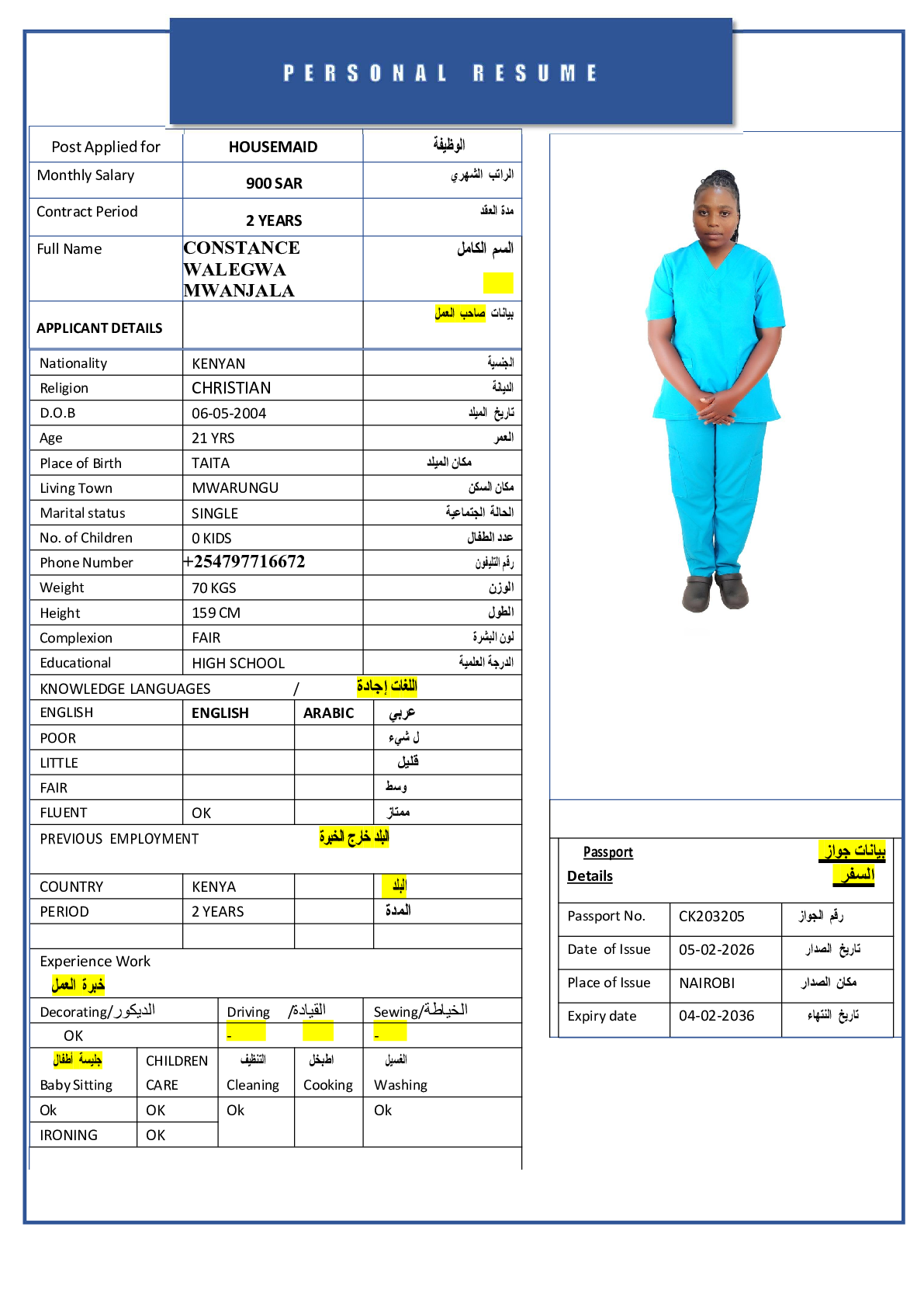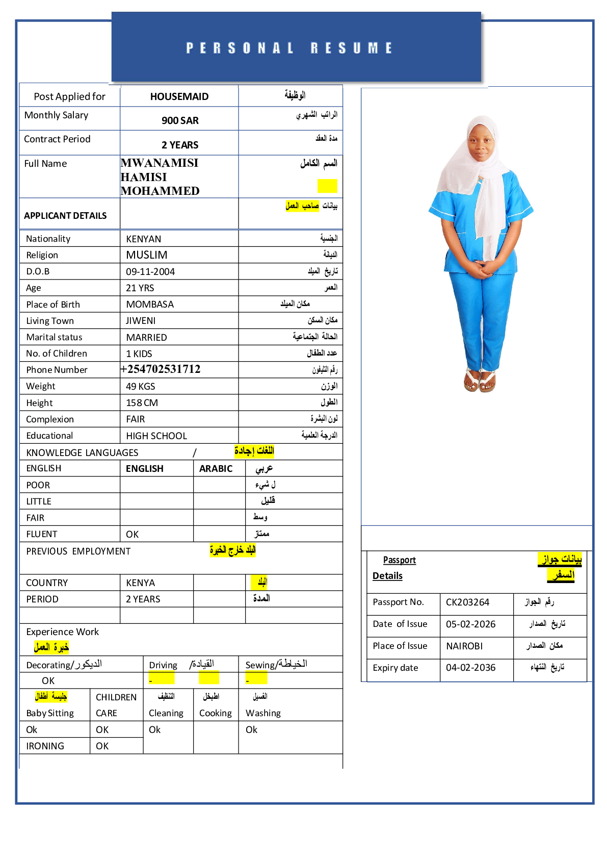 • رقم جواز السفر :