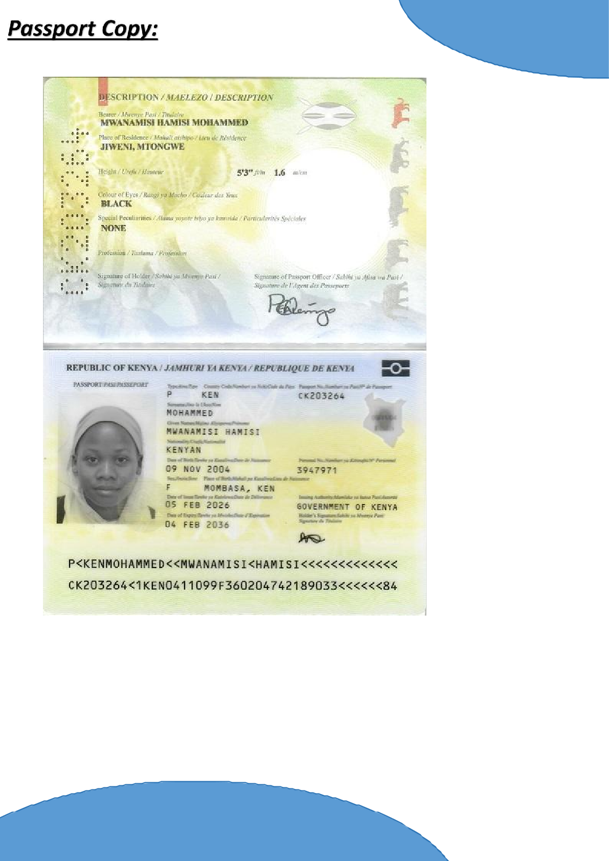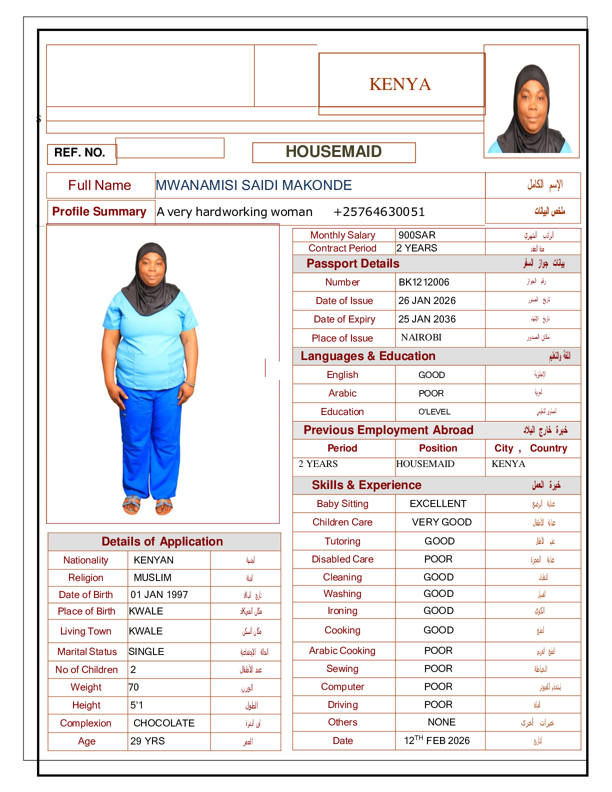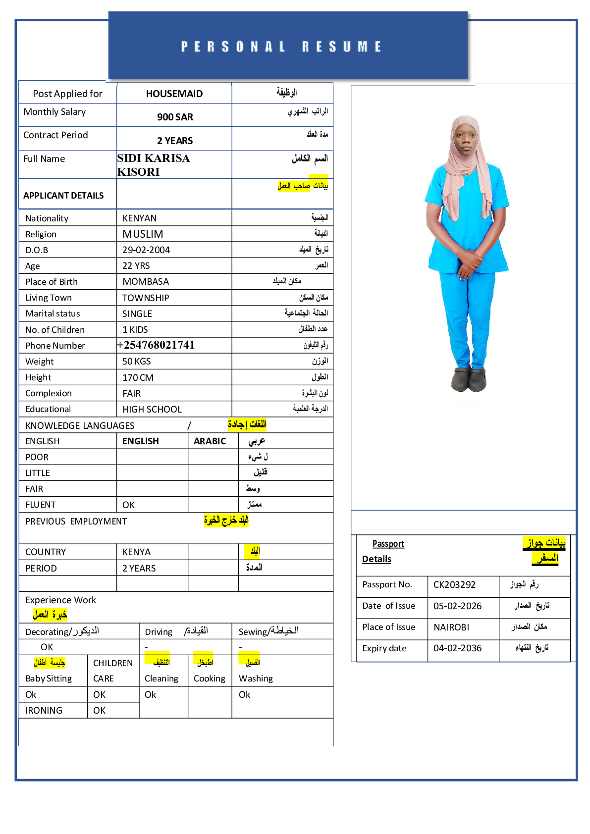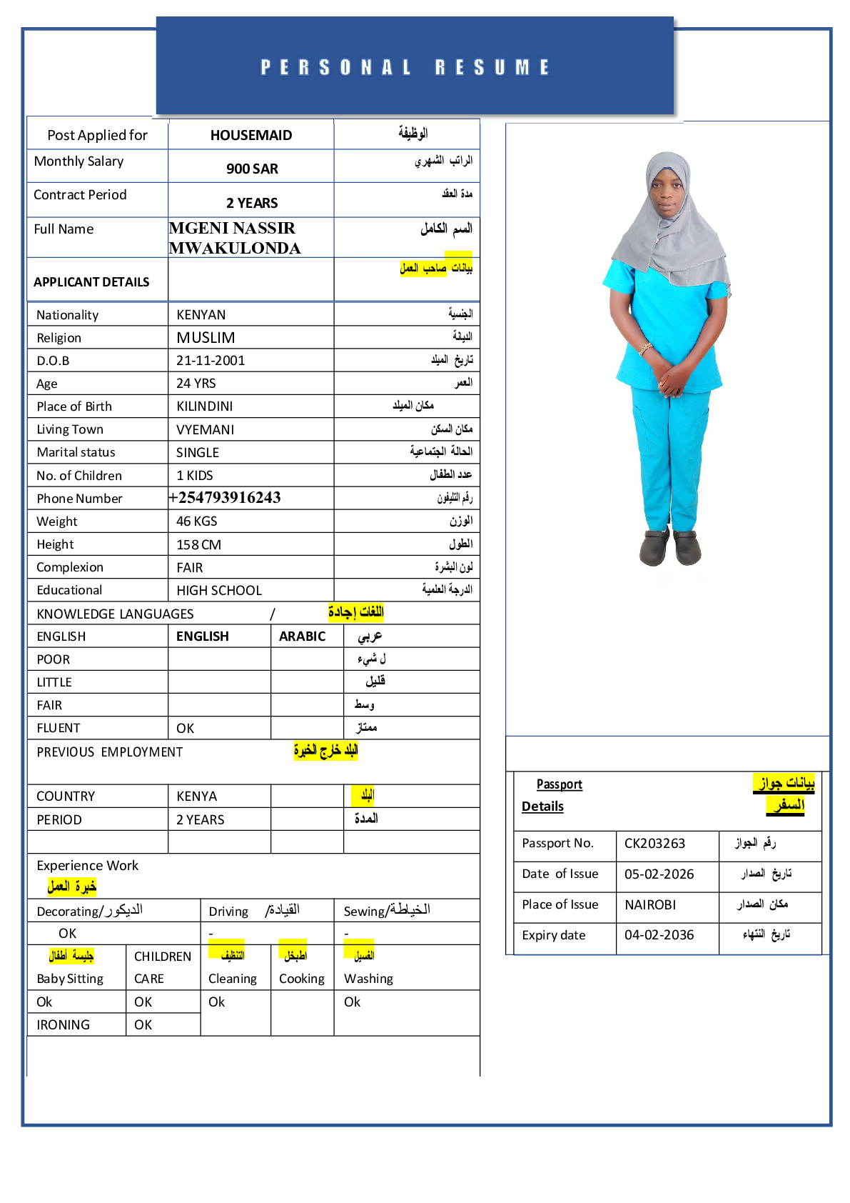 • رقم جواز السفر :