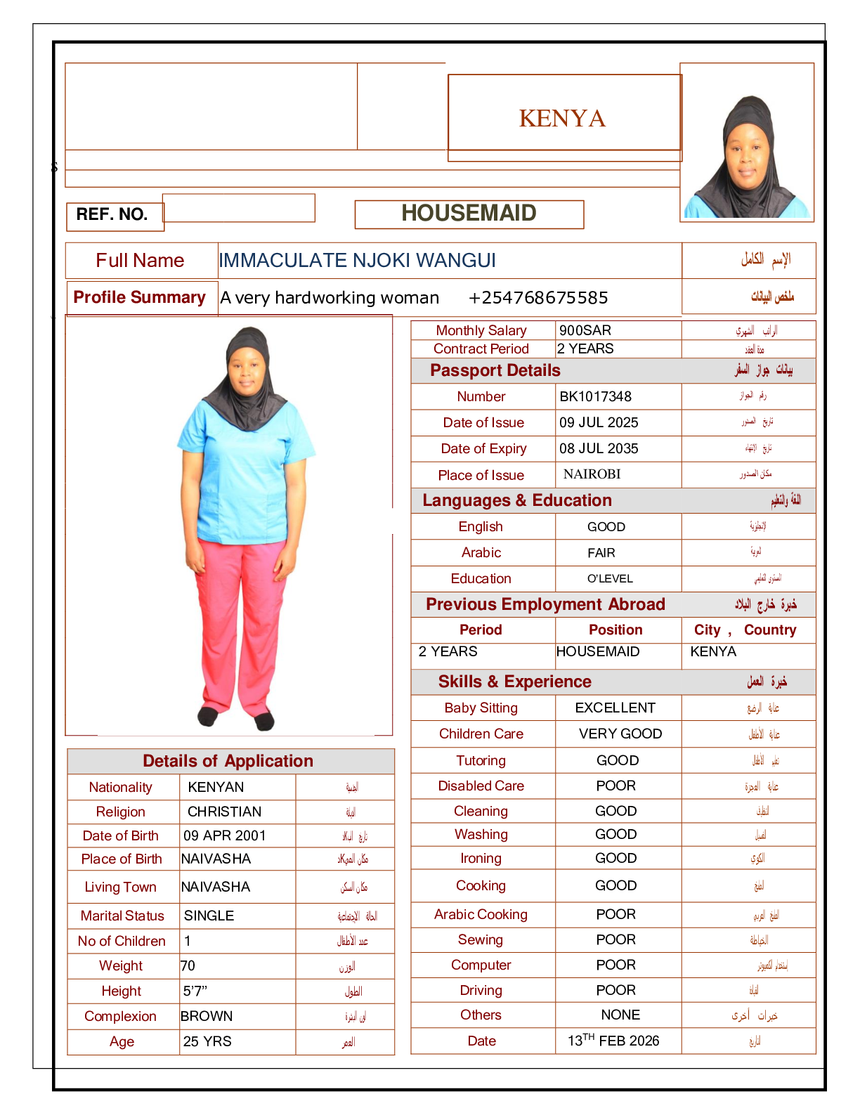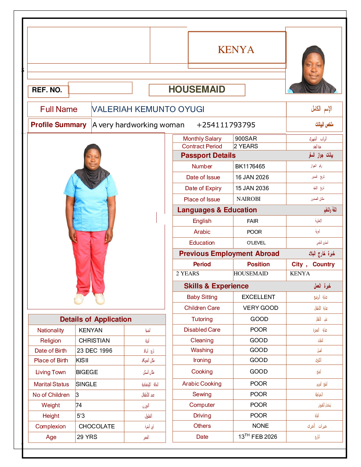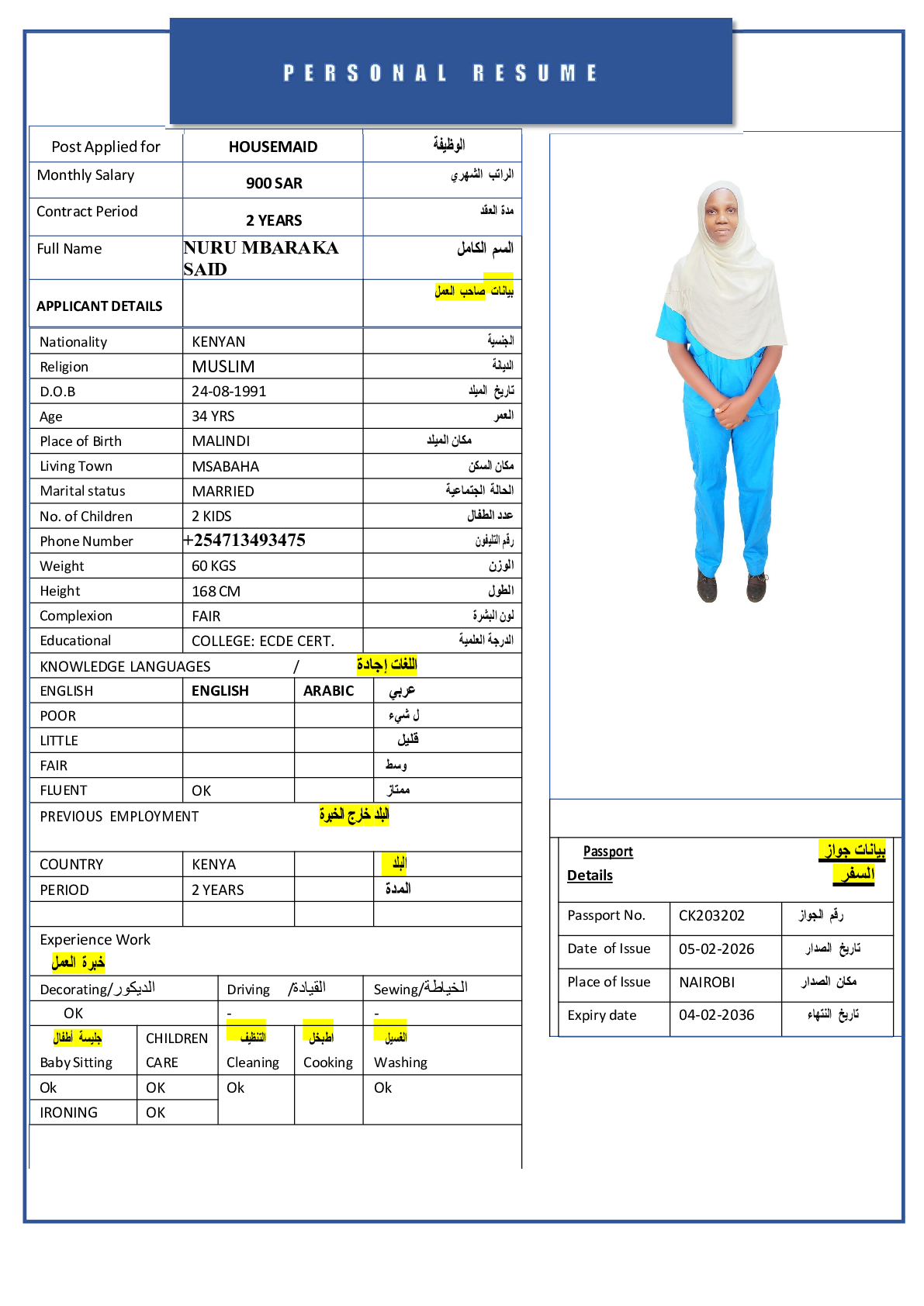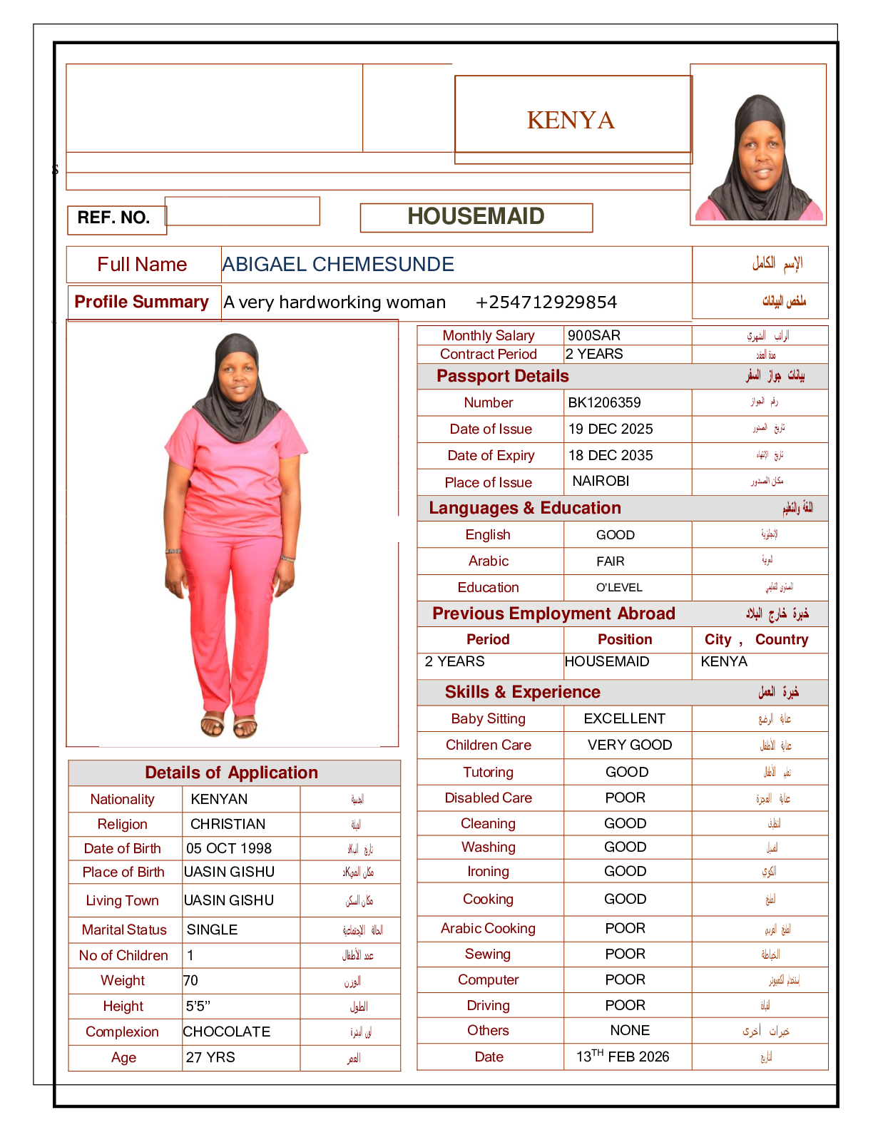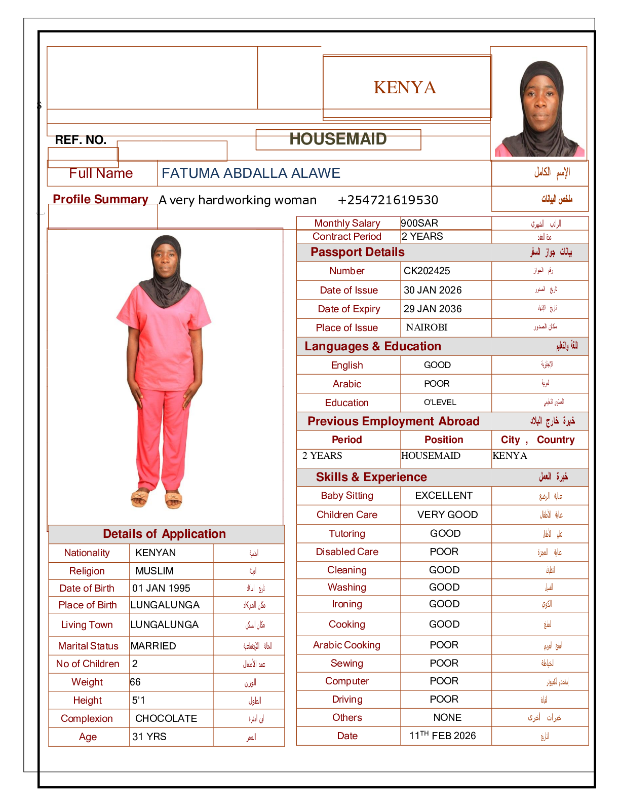 • رقم جواز السفر :