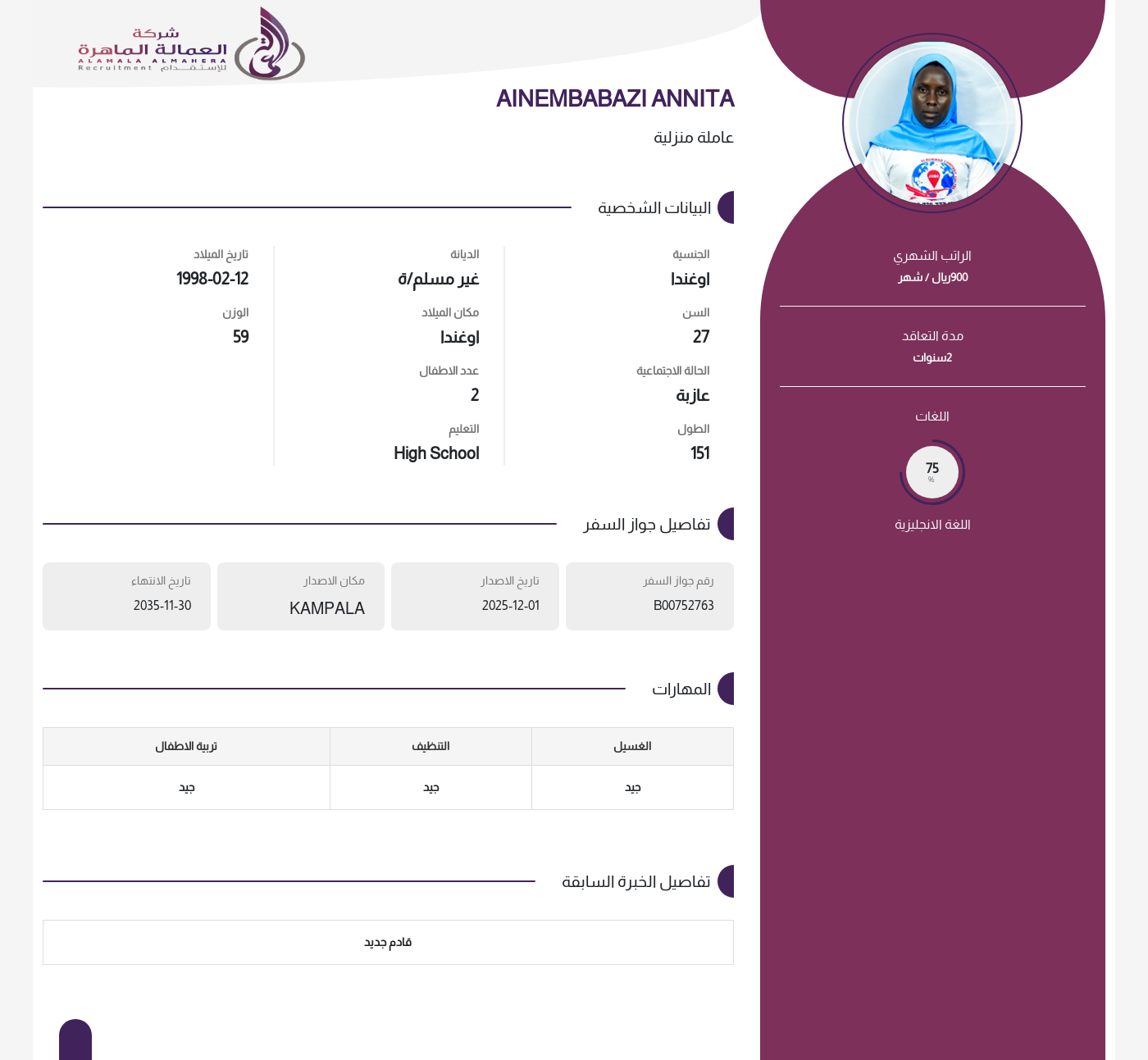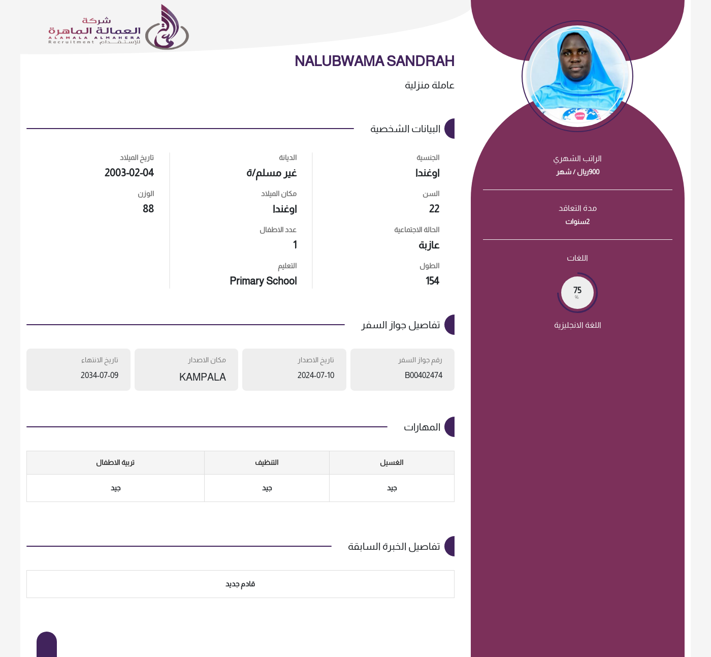 عاملة منزلية