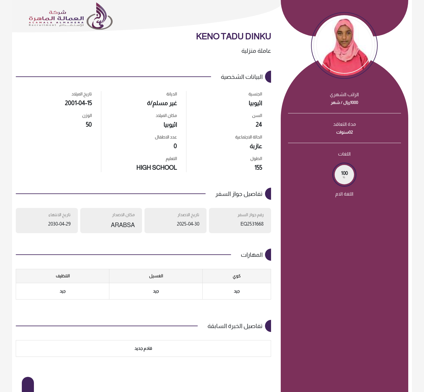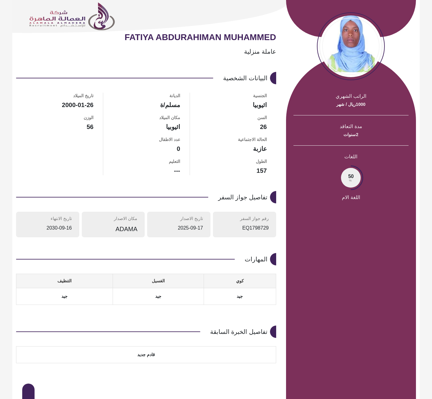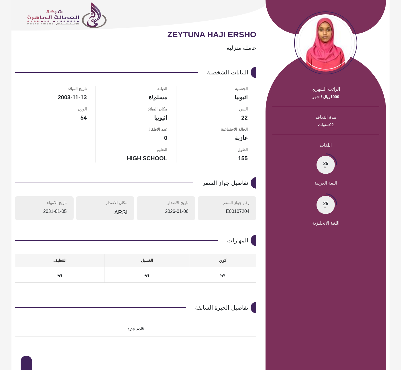 عاملة منزلية