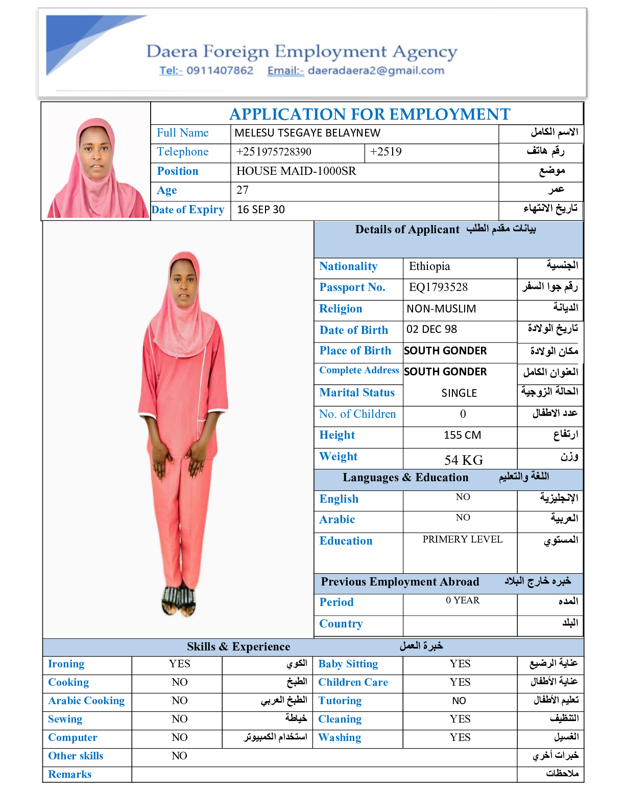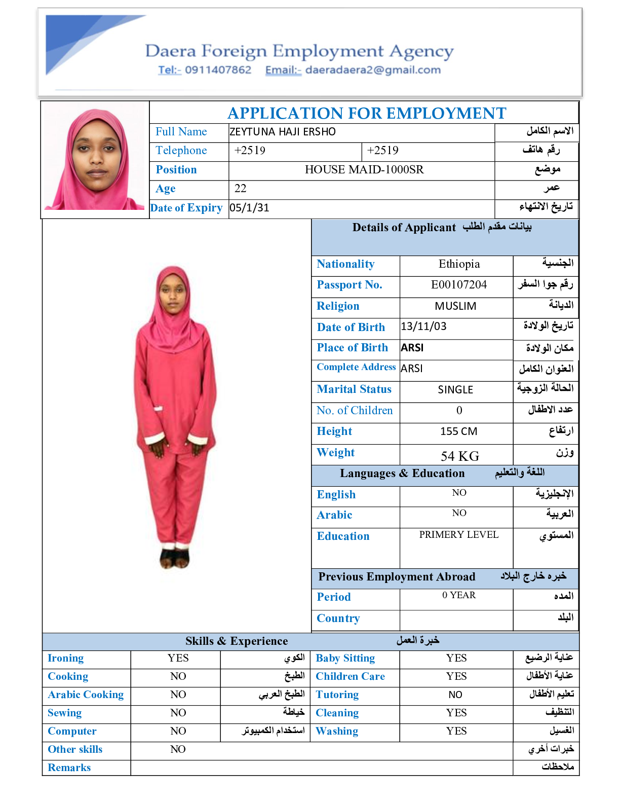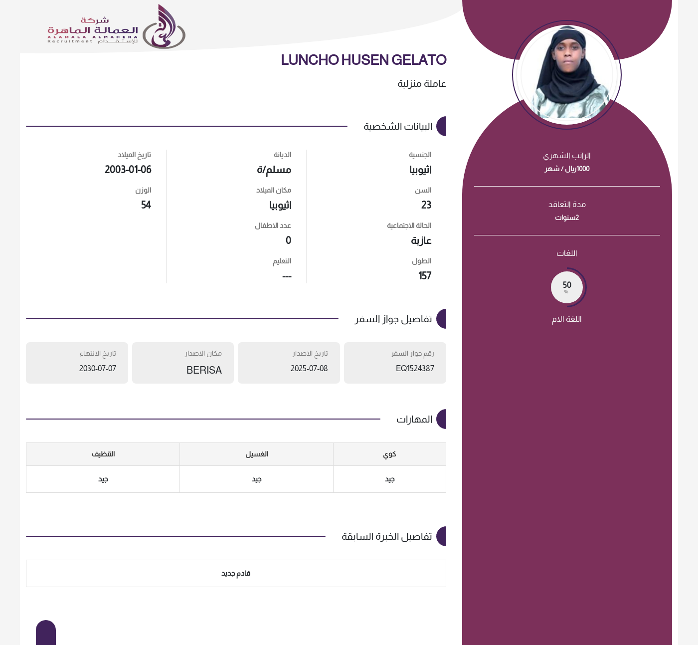 عاملة منزلية