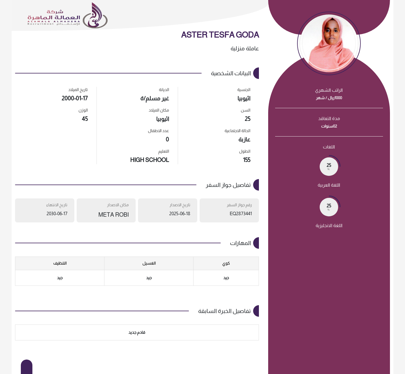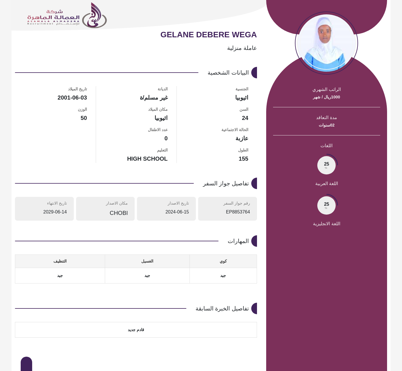 عاملة منزلية